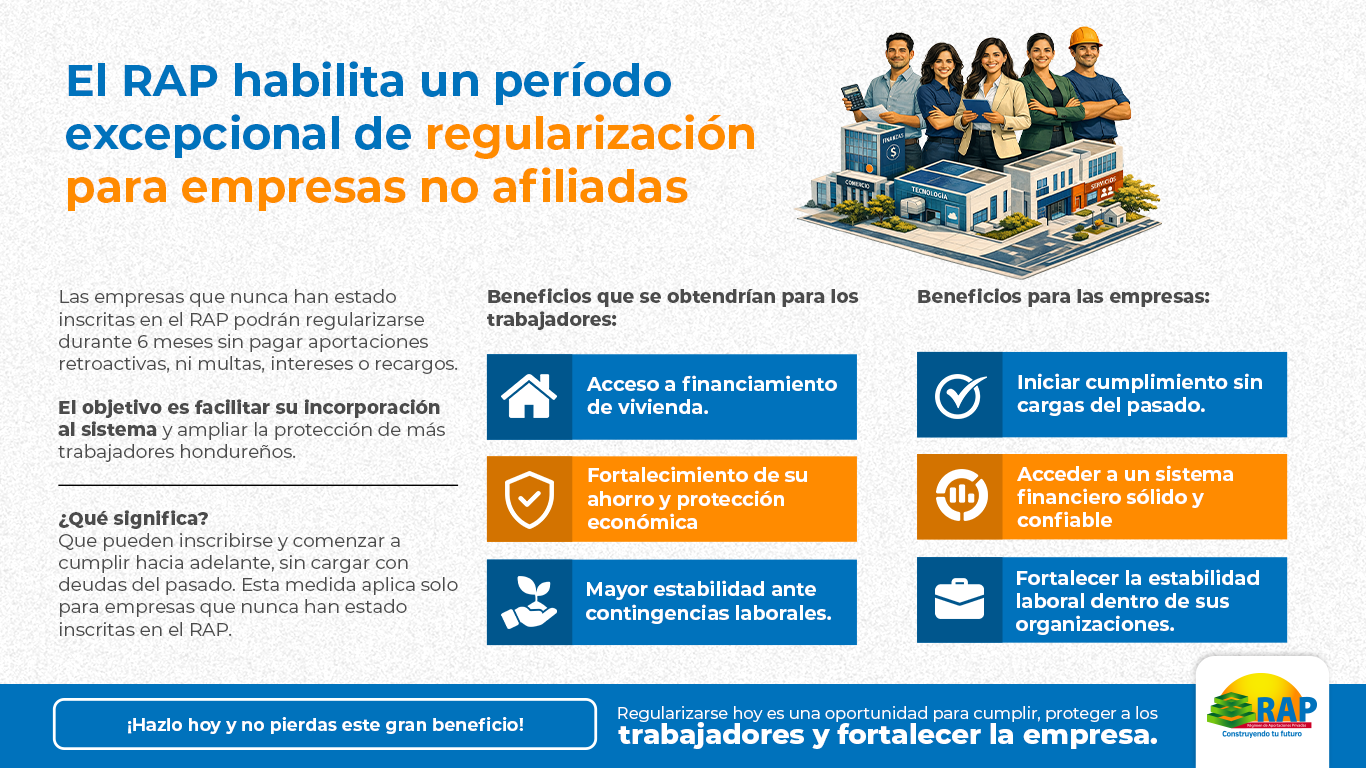 Las Empresas que ya se encuentran inscritas al RAP, deben mantener actualizada su información, de esta manera estarán cumpliendo con la Normativa 019/2016, artículo 40 emitido por la Comisión Nacional de Bancos y Seguros (CNBS)