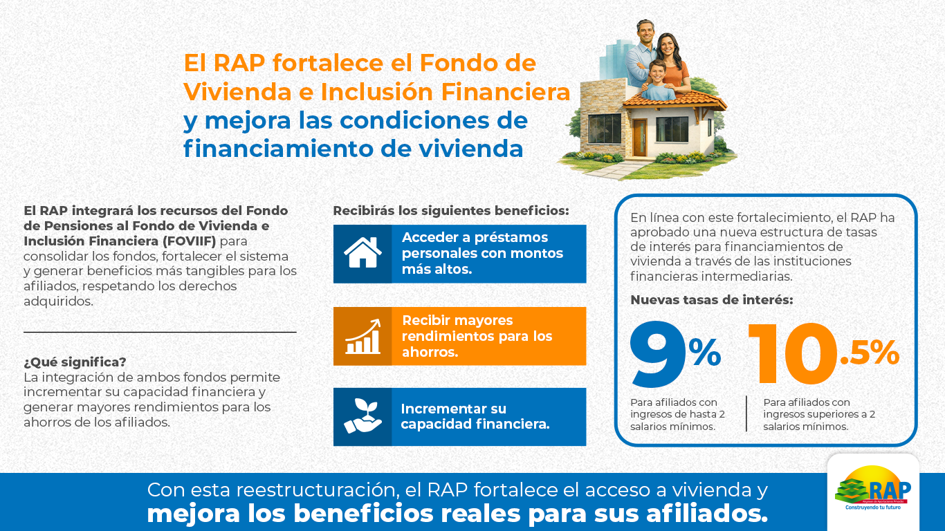 » Afiliados con ahorro acumulado en el Fondo de Vivienda y que estén activos en alguno de los fondos administrados por el RAP.