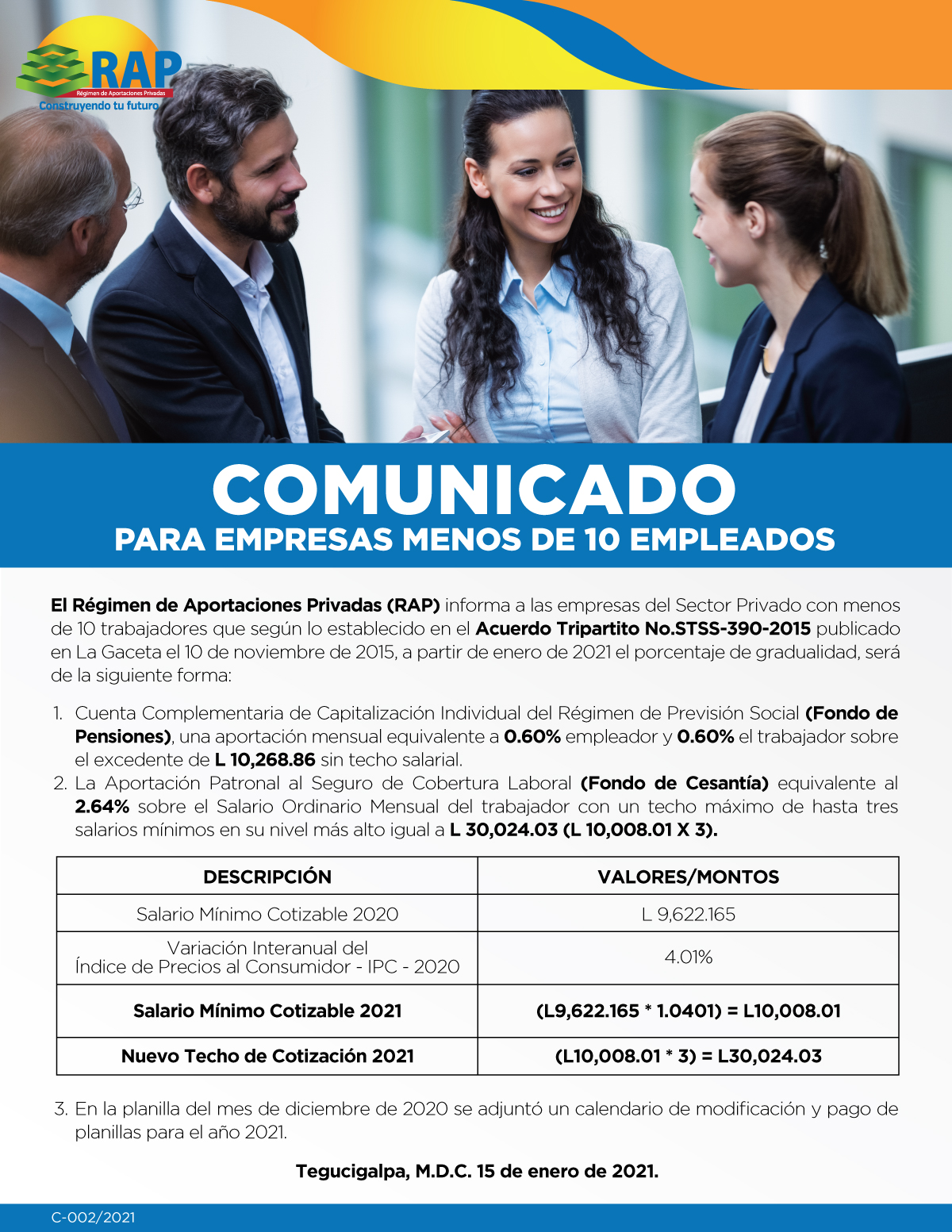 Comunicado – Techo para empresas de menos de 10 colaboradores
